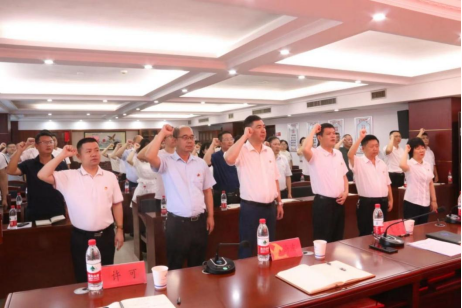 ▲党委书记、董事长申志刚带领全体党员重温入党誓词