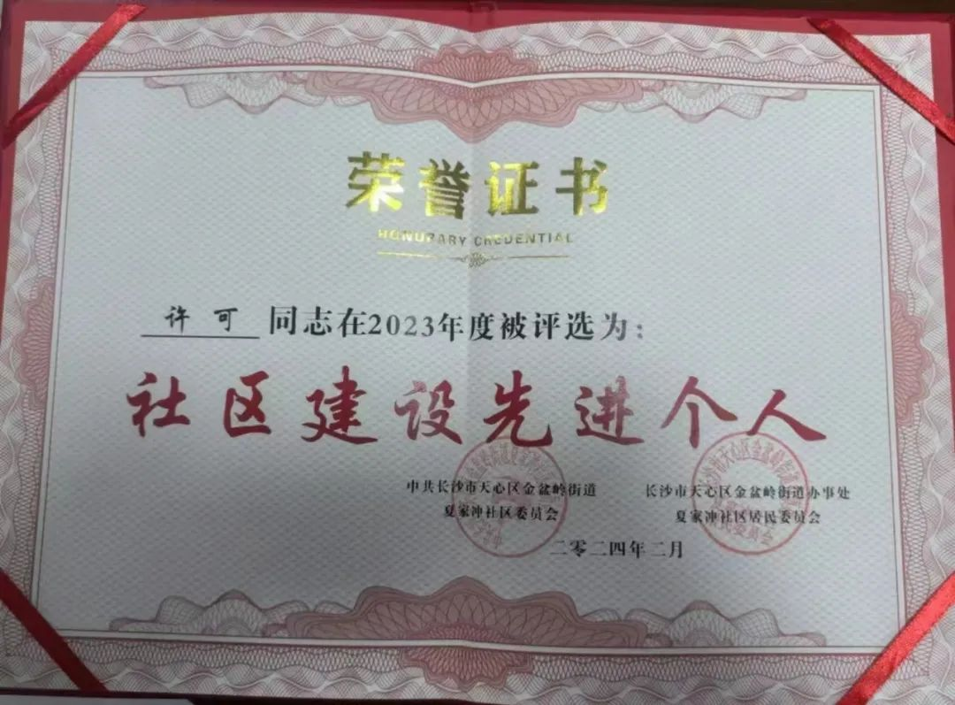 2月5日,天心区金盆岭街道夏家冲社区2023年度党建联创共建活动评选结果揭晓,恒信彩建设集团有限公司荣获“党建联创共建先进集体”,公司副总经理许可荣获“社区建设先进个人”。该荣誉是公司积极推行“企业+社区”党建联创共建共享的成果体现,也是对双方互动合作成效的高度认可和充分肯定。