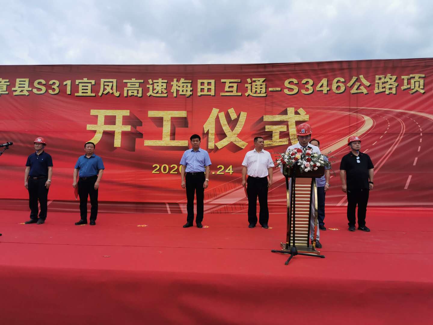恒信彩建设集团有限公司承建的宜章县S31宜凤高速梅田互通至S346公路工程开工仪式在郴州举行,宜章县委副书记、莽山林管局党委书记傅景龙出席仪式并宣布项目开工,公司董事长伍新民一行受邀出席。
