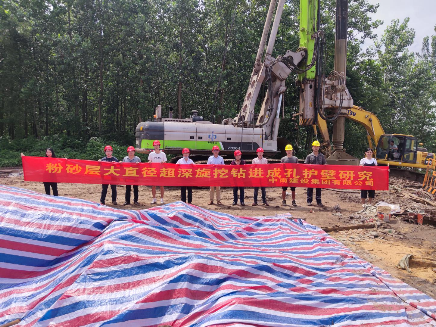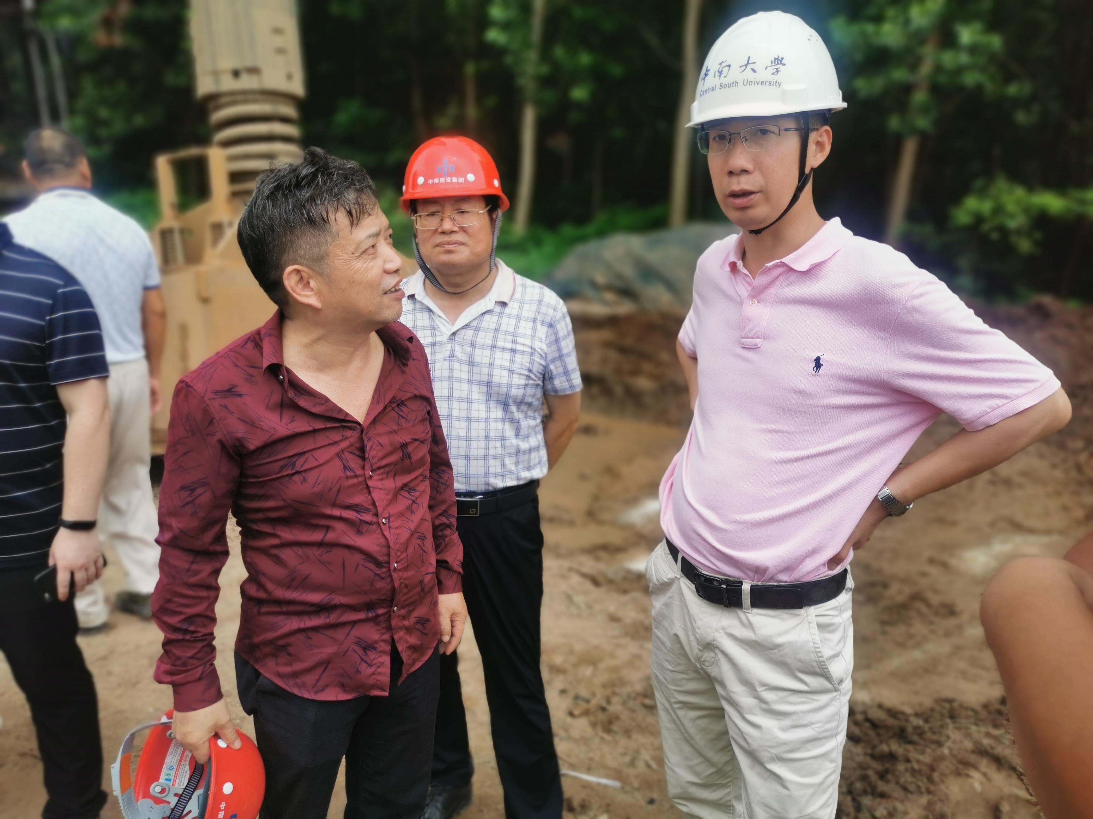 项目实施期间,恒信彩大学地质工程系主任孙平贺、公司盛汉洋及有关科研人员深入现场,重点查看了旋挖钻机和泥浆搅拌机等设备的运行状况及泥浆配比的落实情况,孙平贺针对旋挖钻机在超深大直径复杂地层的地质状况,就泥浆配比如何操作等问题提出了建设性的建议。