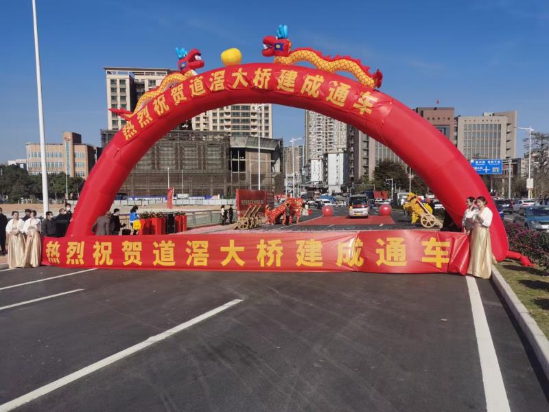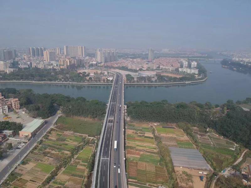 由我公司承建的东莞市道滘大桥重建工程于2020年12月31日正式通车。该项目起点位于道滘镇道厚路蔡白村段,跨越东莞水道后,终于道厚路与桥东大街的平交口。主线全长1.13千米,其中桥梁长度809.04米。主桥72.08+130+72.08m预应力混凝土连续箱梁,最大跨径130m,采用悬臂浇筑法施工,桥宽29米,设计车速60千米/小时,按一级公路标准设计建设。重建道滘大桥有效连接道滘镇与厚街镇、万江以及市中心,交通承载能力大幅提升,极大地缓解了水乡片区往来市区的交通压力,促进了东莞市城乡均衡发展。