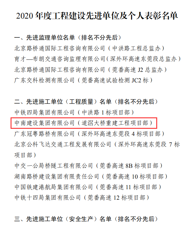 喜讯!道滘大桥重建工程项目部及个人受到业主单位通报表彰