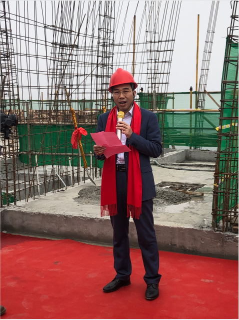 恒信彩建设集团有限公司董事长伍新民出席封顶仪式并致辞。