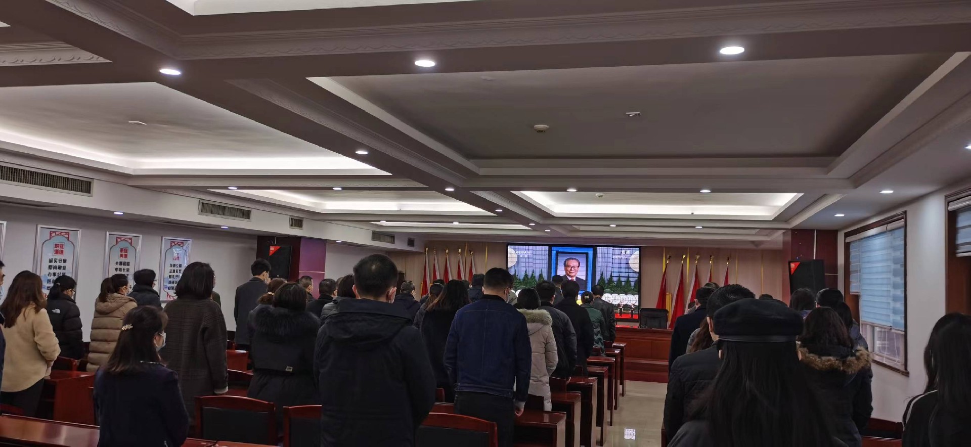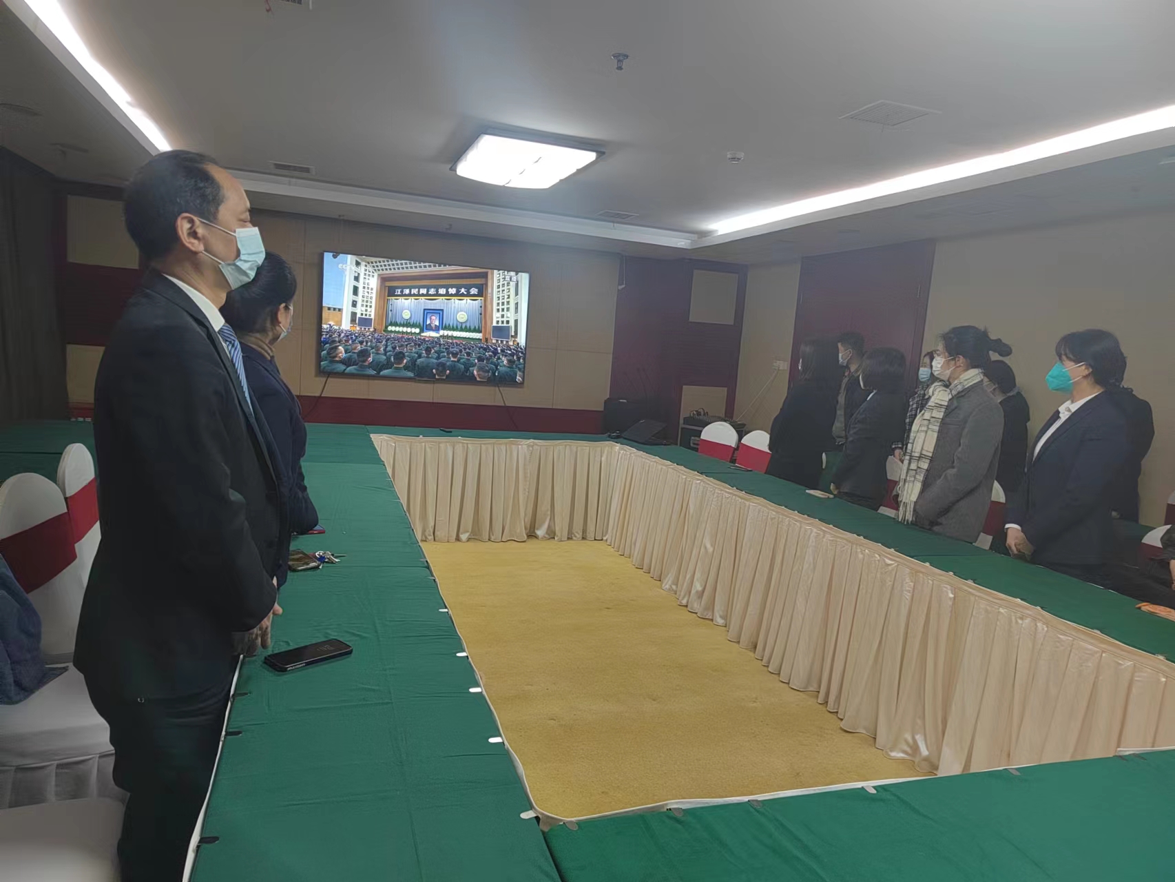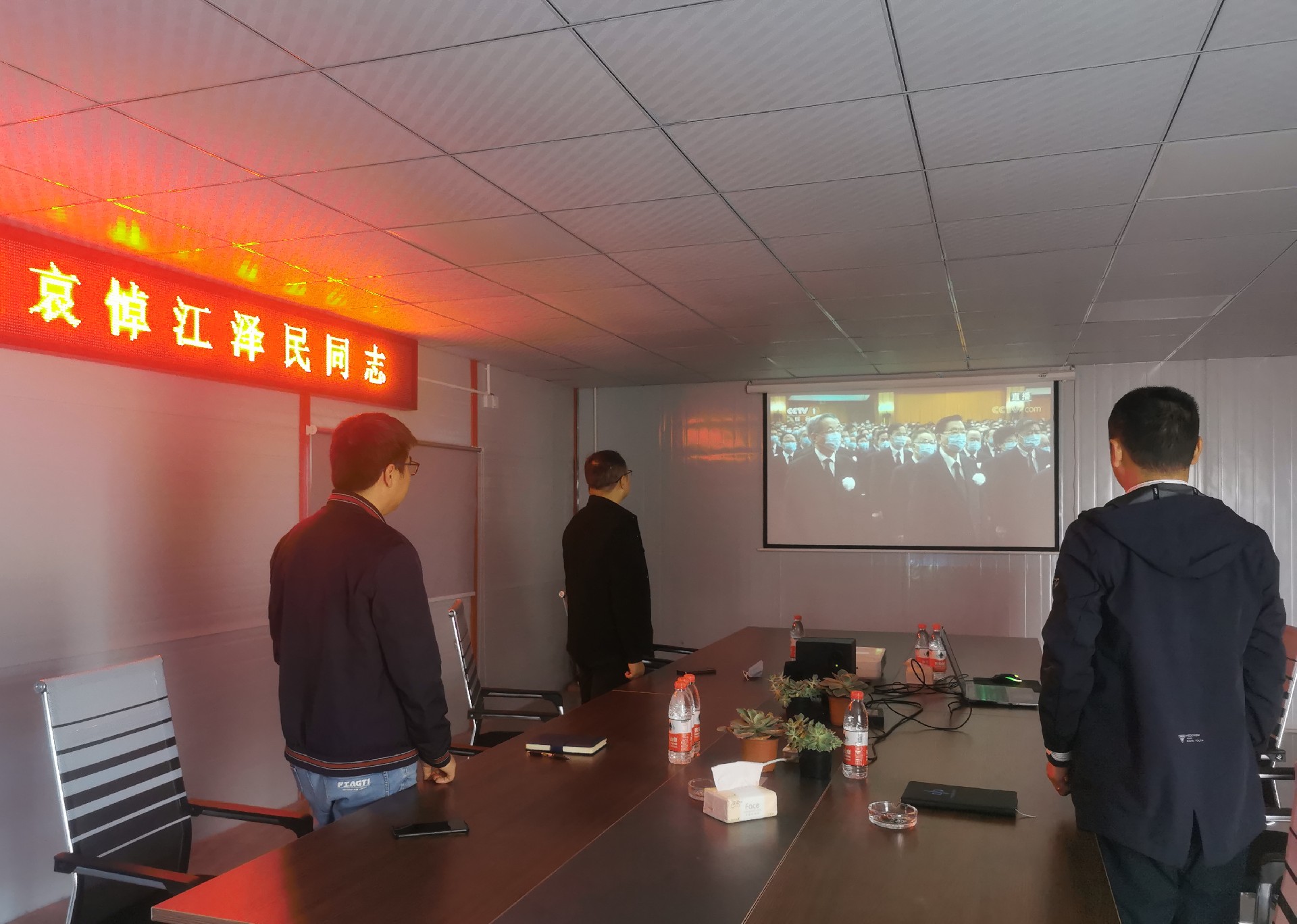 恒信彩建设集团机关全体干部职工肃立默哀3分钟后,全程集中收看追悼会现场直播,深切缅怀江泽民同志的丰功伟绩和崇高风范,寄托心中的哀思。