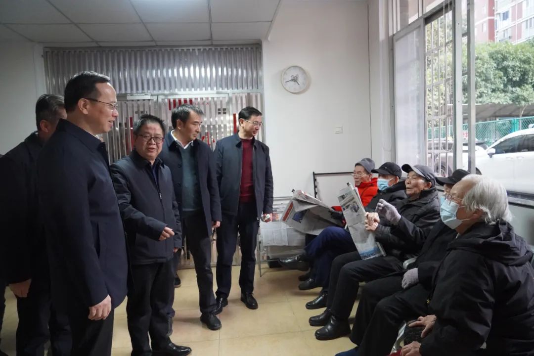 谈文胜一行还对华新花苑小区基地和地质家园小区基地进行了全面安全检查,重点察看了消防设施、电气设备、安全通道等关键区域,对发现的安全隐患进行了现场指导,并要求相关部门加大日常巡查力度,确保各类安全问题得到有效管控。在地质家园小区老年活动室,谈文胜看望和慰问了离退休老同志。他与老同志进行了亲切交谈,仔细询问了他们的身体状况和生活情况,并向他们致以诚挚的祝福与问候。