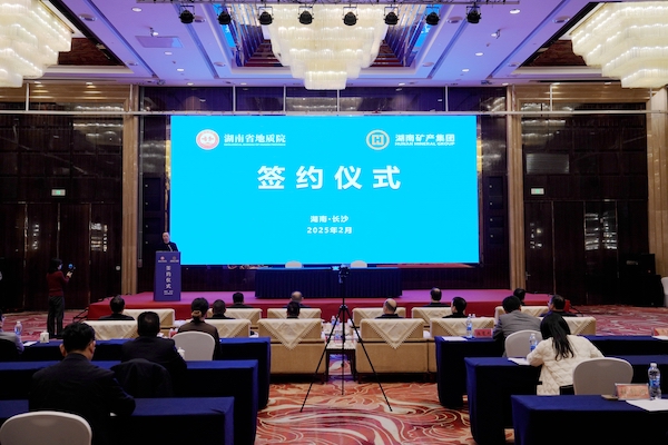 2月24日,湖南省地质院与湖南省矿产资源集团有限责任公司举行战略合作签约仪式,旨在深入落实省委、省政府打造万亿矿业集群和深化地勘单位改革的决策部署,推进湖南矿业产业转型升级。湖南省财政厅党组成员、副厅长刘见,自然资源厅党组成员、副厅长李定桥,省国资委党委委员、副主任张翔,省地质院党委书记谈文胜,湖南省矿产资源集团有限责任公司党委书记、董事长王选祥出席并见证签约。省地质院党委副书记、院长张皓主持签约仪式。