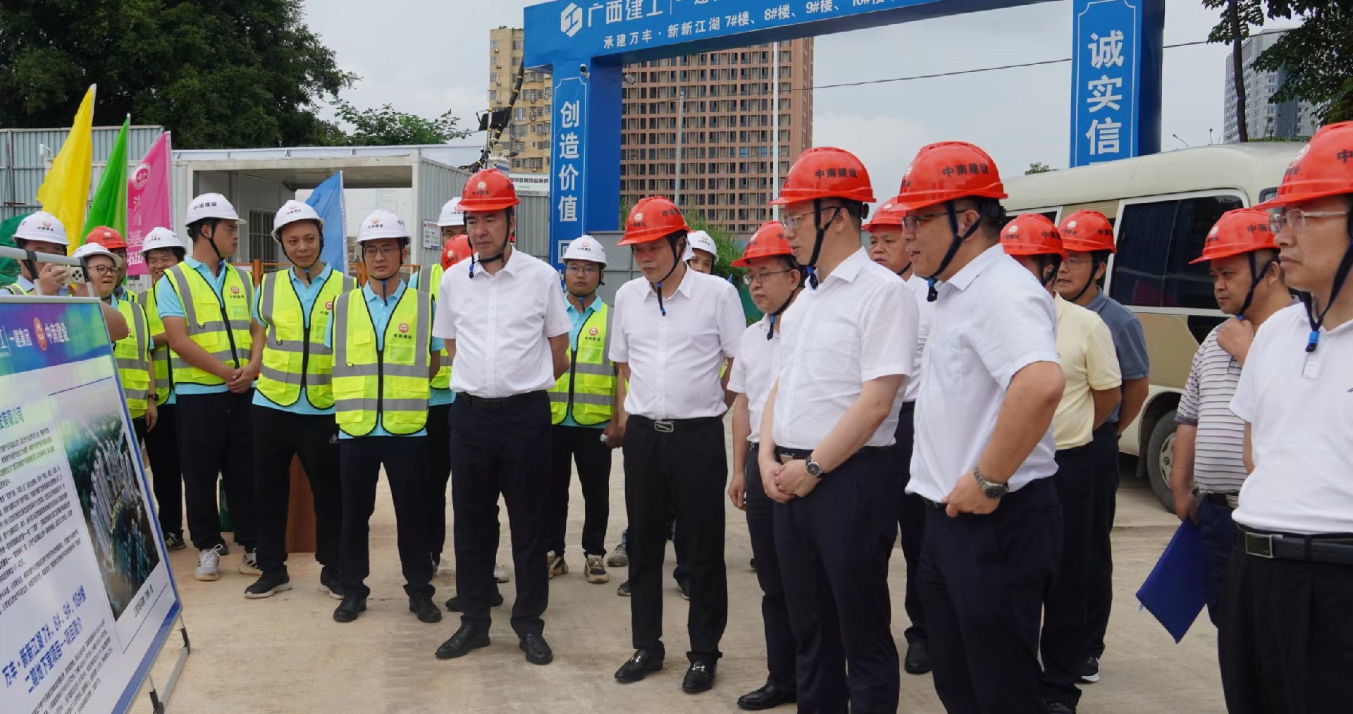 谈文胜一行先后来到项目建设工地、职工食堂、职工宿舍、党建活动室等地,认真查看并详细了解了项目施工进度、基层党建、安全生产、技术应用、职工生活住宿等情况,现场提出安全生产隐患整改意见。随后组织召开了项目座谈会,听取项目各项重点工作情况汇报,研究部署下阶段工作任务。集团公司党委书记、董事长申志刚代表项目部做工作情况汇报,广西建工一建集团第六分公司总经理高长亮,湖南基础公司总经理凌刚作了补充情况说明。与会人员围绕项目管理、安全生产、科技创新等内容开展座谈交流。