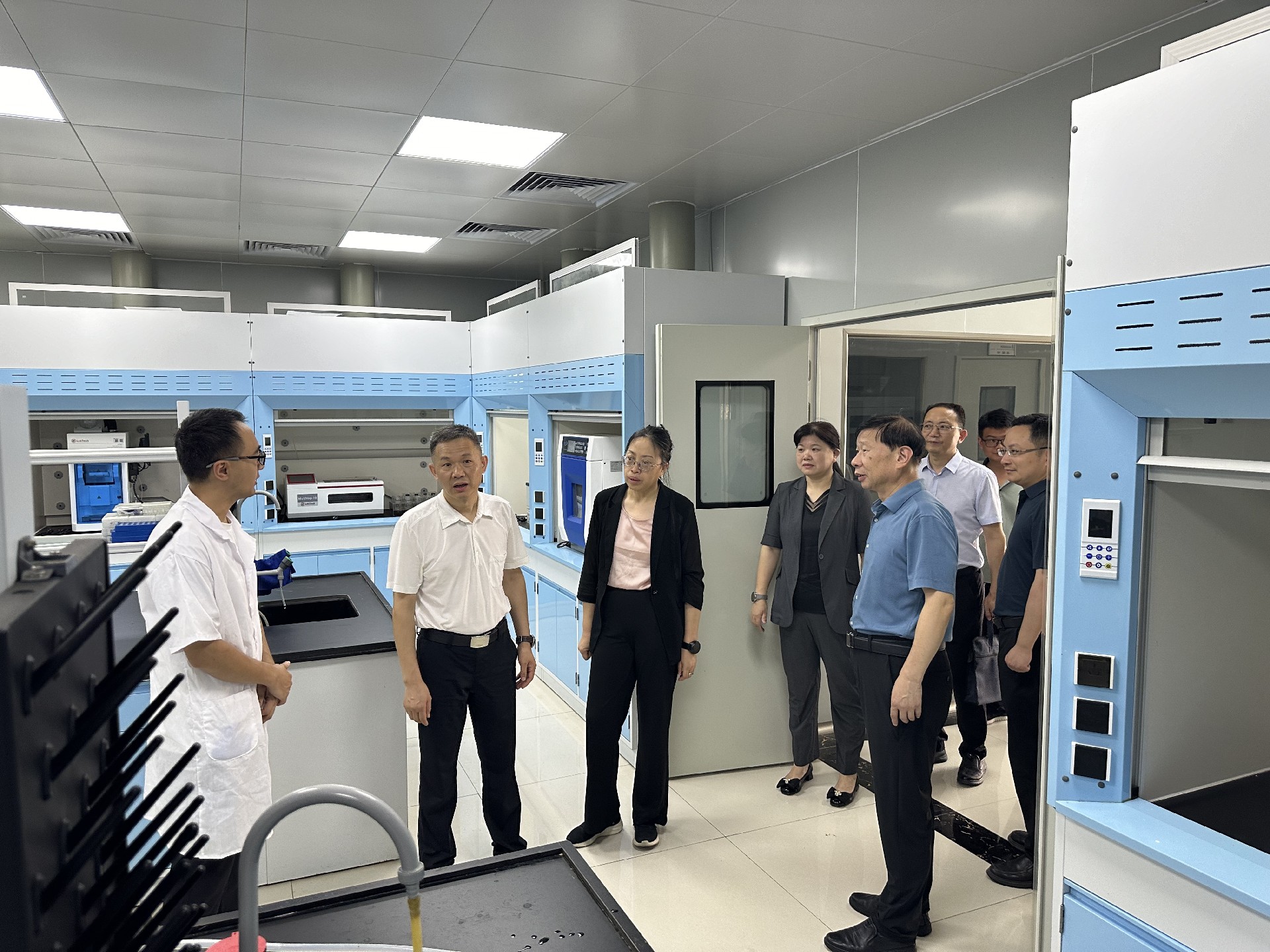 黄快林还调研察看了省遥感所实验测试中心各检测分析室,现场听取实验室负责人关于实验检测相关仪器设备功能及湖南省第三次全国土壤普查工作情况的介绍,了解遥感所地质工作向卫星遥感监督、生态环境保护、地灾防治监测等方向转型发展的新趋势。他指出,湖南省地质院是一支特殊的队伍,始终秉承地质“三光荣四特别”精神,扎根于基础性、公益性、战略性地质工作,为“两弹一艇”找铀矿等许多地质报国的感人事迹被传为佳话。此次代表省总工会向省地质院的一线工作者送清凉,表达慰问和敬意。并表示,湖南省地质院当前处于转型发展期,省总工会将加大力度支持地质工会做好各项工作;地质工会及院属各级工会要始终把职工生命安全和身体健康放在第一位,抓好防暑降温、劳动防护工作,确保职工安全健康。