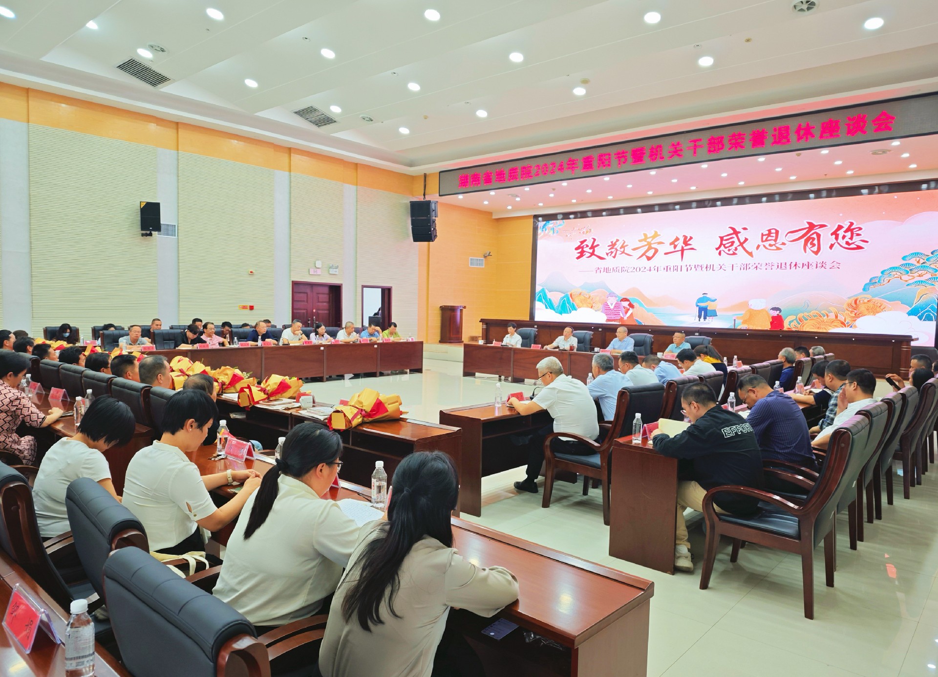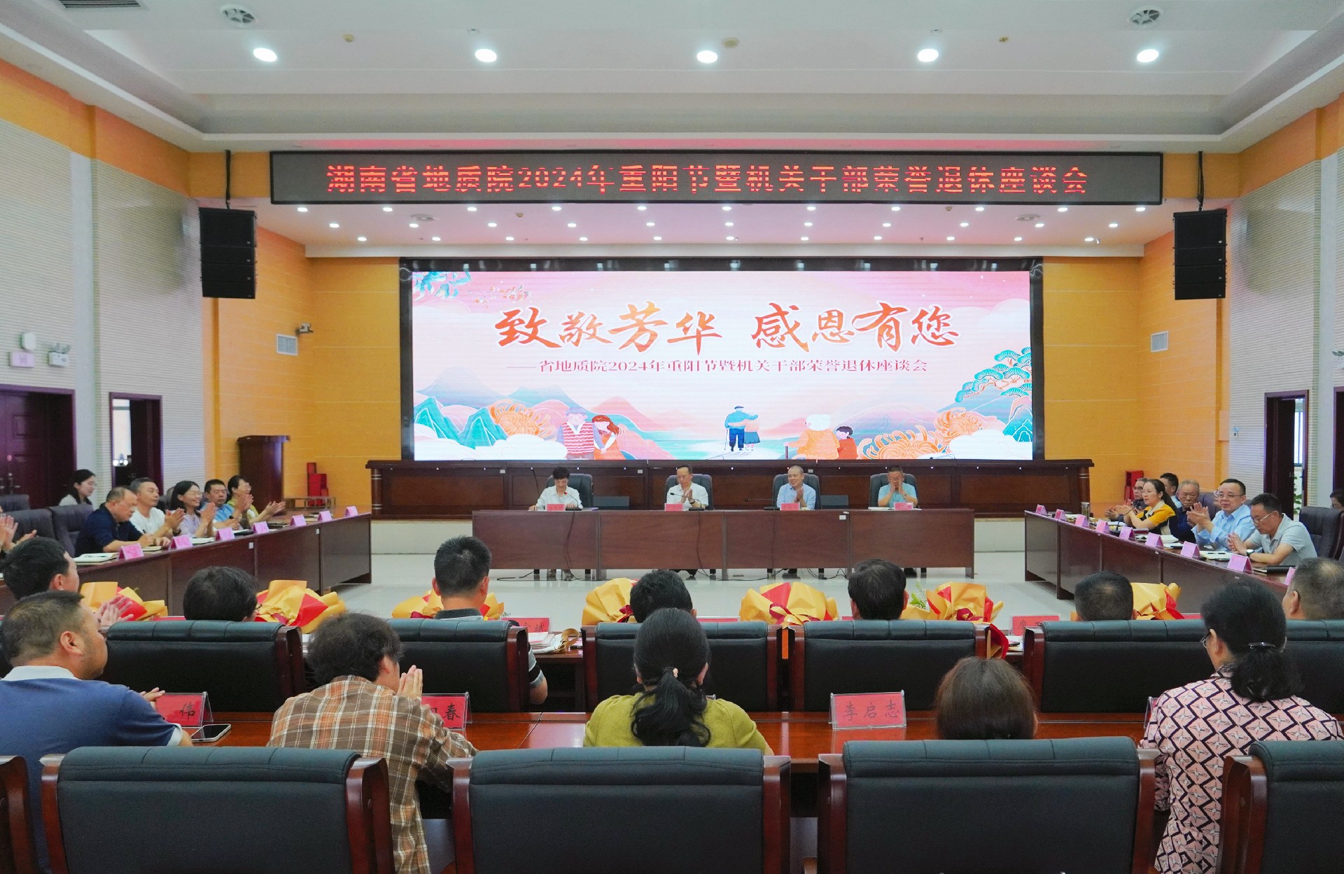 10月11日,正值重阳佳节,湖南省地质院举行2024年重阳节暨机关干部荣誉退休座谈会,现场温馨的氛围弥漫。院党委书记谈文胜出席,与新近退休同志代表共庆重阳佳节、共叙深厚情谊、共话未来发展,并代表院党委向与会退休同志以及全院广大老干部、老同志送上节日问候和美好祝愿。院党委委员、副院长刘凤娟主持座谈会,在家院领导参加。