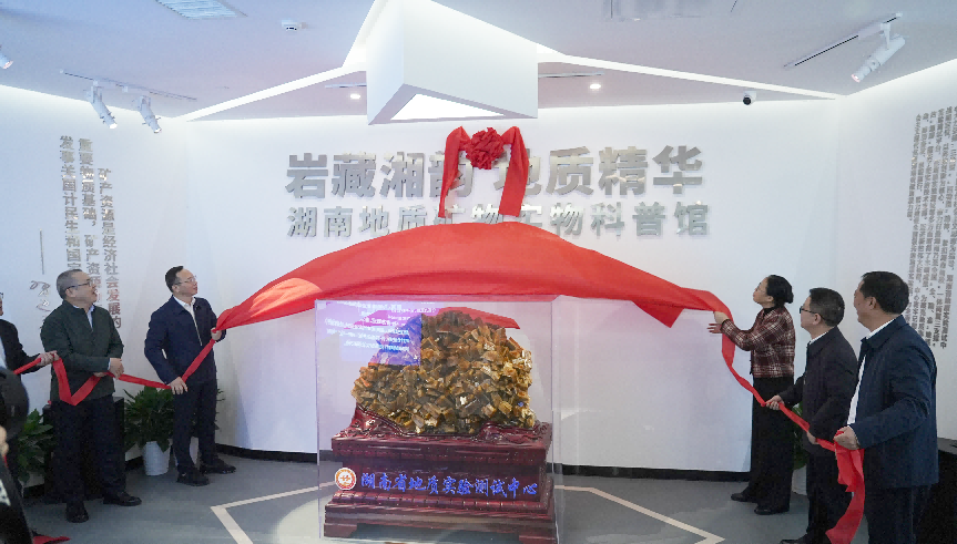 10月28日,湖南省地质院举办湖南地质矿物实物科普馆开馆仪式,标志着湖南地质科普教育基地又添新成员。省地质院党委书记谈文胜出席并宣布开馆,省地质院在家院领导共同为科普馆揭牌。