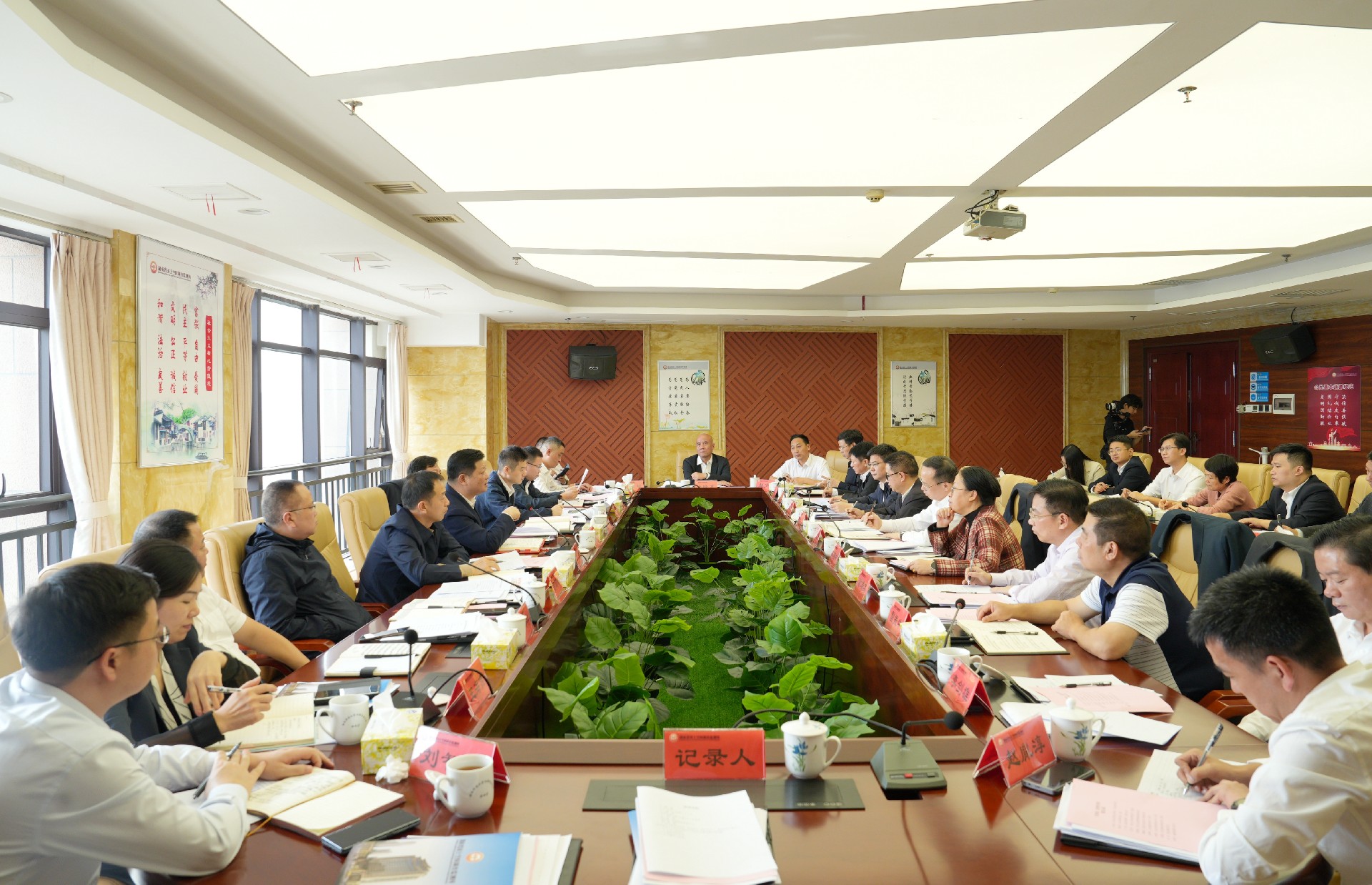 10月29日上午,长沙经开区党工委书记、长沙县委书记付旭明,长沙县委副书记、县长陈永高一行到省地质院有色地勘大厦会商交流并召开现场办公会,省地质院党委书记谈文胜出席并讲话。省地质院党委委员、纪委书记王惜珍,省地质院党委委员、副院长全铁军,长沙县委常委、县委办主任卢铓,县人民政府党组成员、副县长吴正华参加。