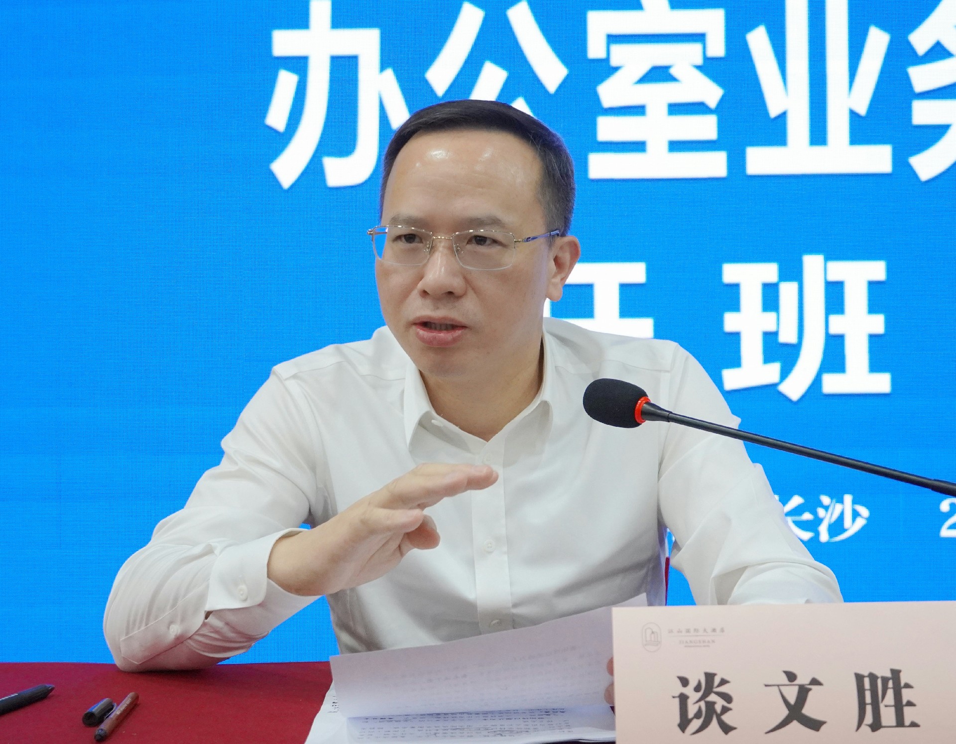 10月28日,省地质院2024年办公室业务培训班在长沙举行。院党委书记谈文胜出席开班仪式并讲话,院党委委员、副院长李晴日主持开班仪式,院属单位主要负责人以及分管办公室负责人参加开班仪式。