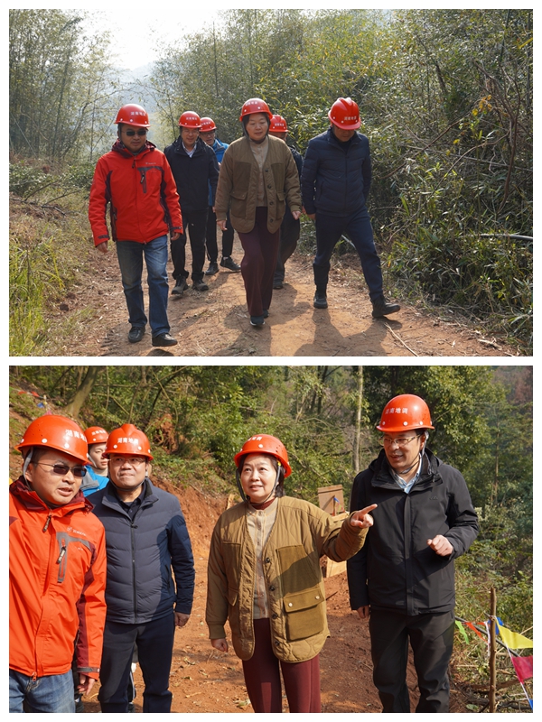 张皓一行听取了省地调所关于楠木冲锰矿详查项目安全生产和勘查阶段性成果的情况汇报。在施工现场,张皓详细检查安全生产情况,查看岩芯,了解现阶段的找矿成果,听取项目组下一步工作的打算,指出既要确保项目如期完成目标任务,又要确保人员安全。在钻探机台上察看施工环境、施工质量和安全状况,详细了解项目组在勘查过程中可能产生的安全问题,对安全生产进行现场指导,她强调,要预防电火风险,严格限制火种进入,确保每一个用电环节符合规范,为项目筑牢坚实的用电安全屏障;要警惕滑坡隐患,通过定期巡查、专业勘测等手段,提前识别潜在的滑坡风险点,并采取有效的加固和防护措施;要防止干扰居民生活,及时了解居民的诉求和意见,积极回应居民关切,主动化解可能出现的矛盾和问题,营造和谐的项目建设氛围。