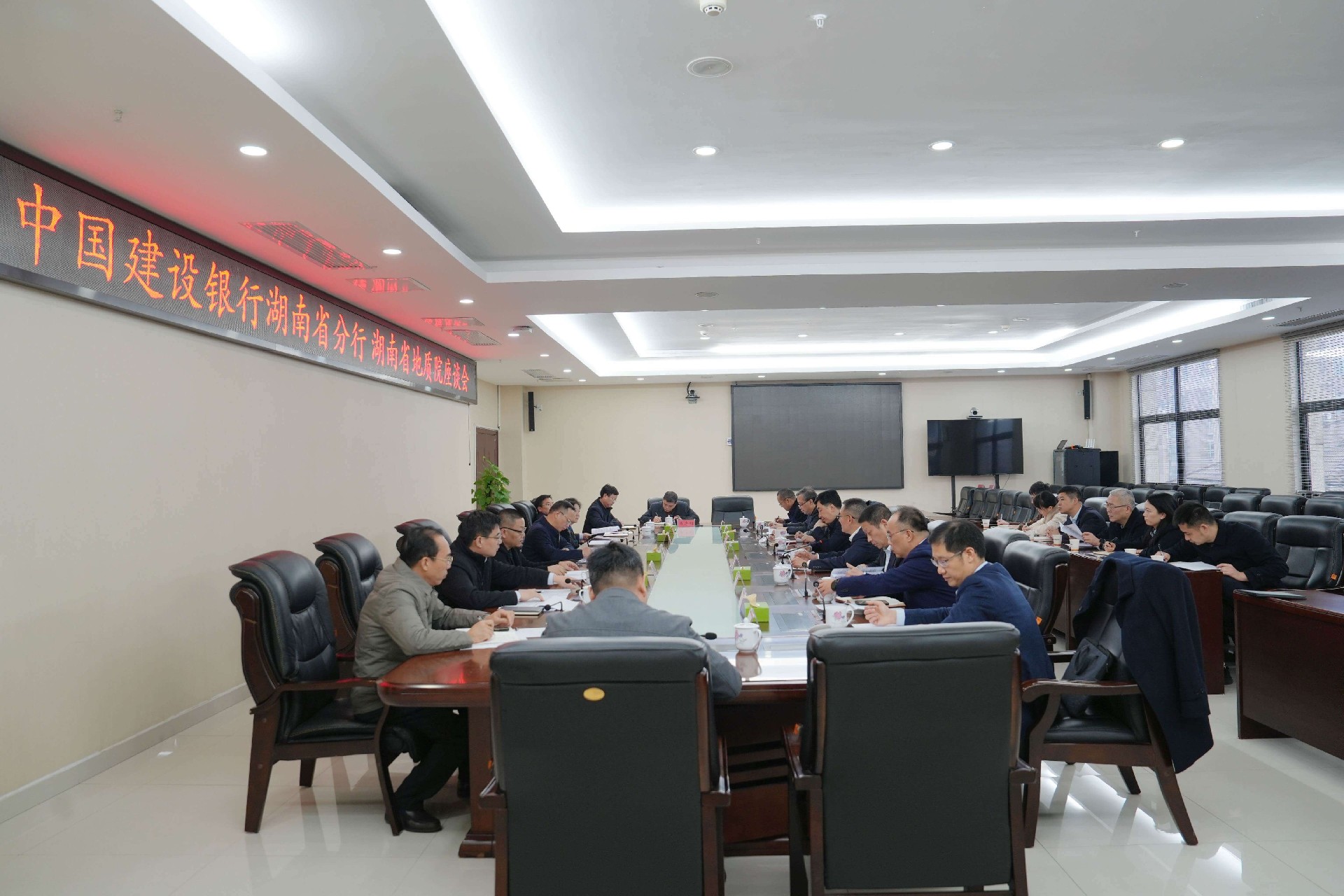 12月24日,中国建设银行湖南省分行党委书记、行长李涛一行到访省地质院,双方就进一步提升金融服务质效,全方位巩固战略伙伴关系,共同探索金融与地质领域合作新路径展开深入交流。省地质院党委书记谈文胜出席并讲话,院党委副书记、院长张皓主持会议。建行湖南省分行党委委员、副行长安利,省地质院副院长李晴日参加座谈。